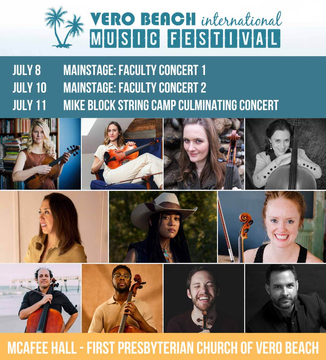 Since 2010, world-class musicians from around the country have been gathering in Vero Beach to perform together in one-of-a-kind collaborations at the invitation of the Mike Block String Camp, held annually at First Presbyterian Church. We present public concerts each July, furthering our mission is to bring the whole world of music to the Treasure Coast!
